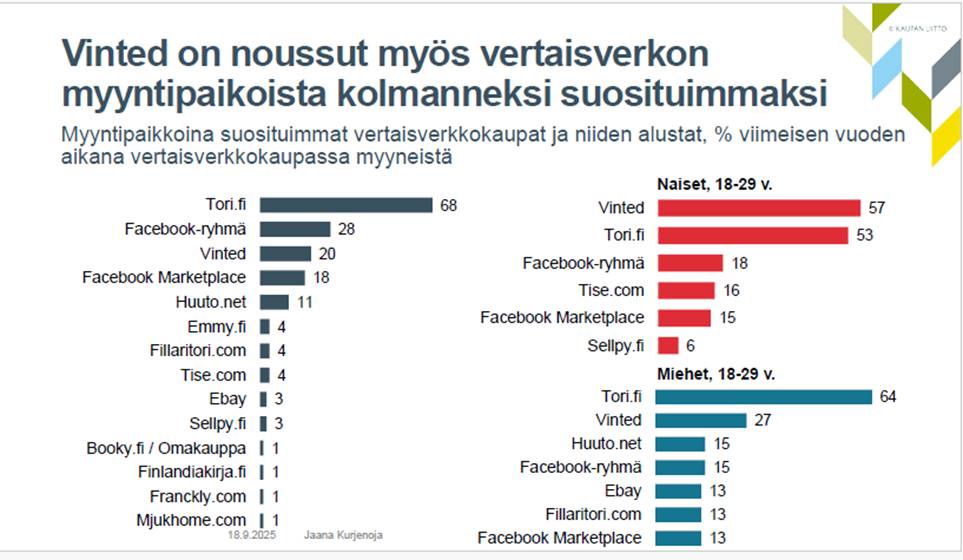 Kurjenoja esitteli Erikoiskaupan liitto Etu ry:n osittain rahoittamaa selvitystään ”Second hand -kuluttaja ja kiertokaupan markkina Suomessa 2025” Kaupan liiton ja Etu ry:n järjestämässä webinaarissa 18. syyskuuta 2025.