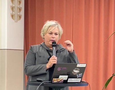 Kuva: Elina Saarinen. Virpi Mikkonen Business Finlandilta kertoi yritysten rahoitusmahdollisuuksista KIRAilmasto-tulosseminaarissa tammikuussa 2026.