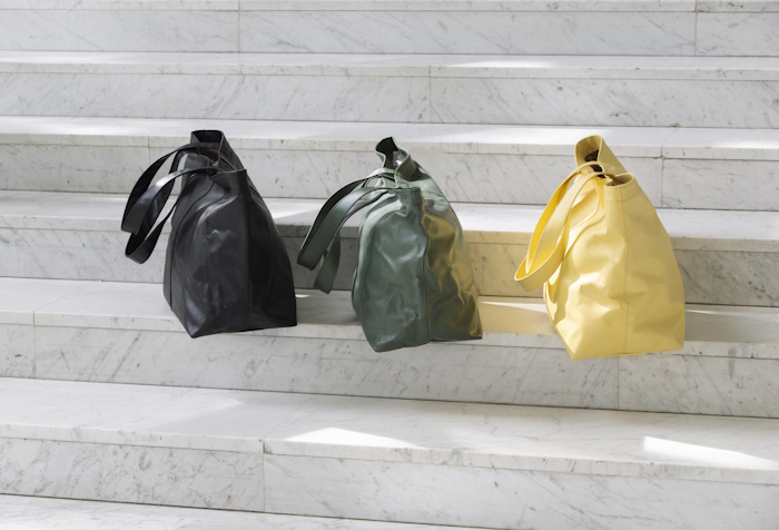 Kuva: Lovia. Kiertotalousmuotiin erikoistunut Lovia ja materiaaliteknologiayritys Brightplus ovat esitelleet uuden biopohjaisen ja sataprosenttisesti kierrätettävän laukkumalliston.