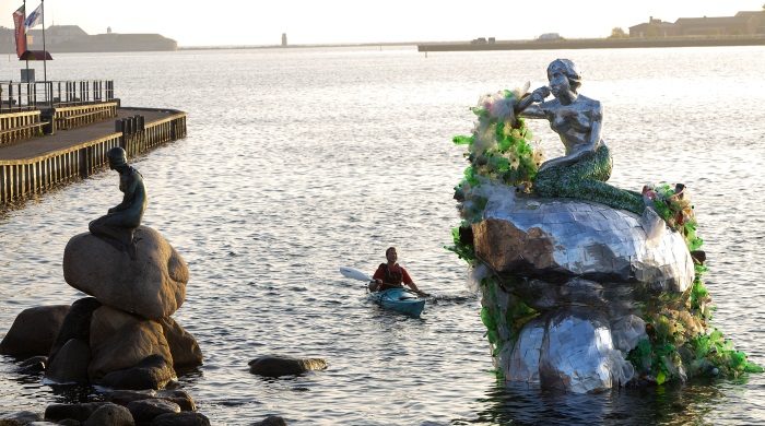 Kuva: Carlsberg. Carlsberg paljasti syyskuun alussa oman versionsa Kööpenhaminan Pieni merenneito -patsaasta, joka on tehty kokonaan uusista, muovittomista Snap Pack -tölkeistä. Patsaan tölkkejä pitää koossa sama liima kuin tölkkipakkauksiakin. Kolmimetrisessä installaatiossa on myös nousuvettä kuvaava 137-kiloinen muovimassa, joka edustaa sitä pakkausmäärää, joka Carlsberg Snap Packin avulla voidaan vähentää tuotannosta joka tunti, yhteensä 1 200 tonnia vuodessa.