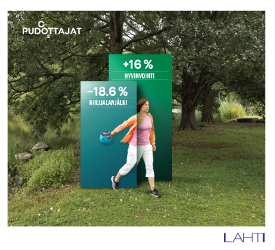 Ympäristön huomioiminen osana hyvinvointia laski osallistujien hiilijalanjälkeä keskimäärin 17 % ja terveellisempi arki näkyi 16 % kasvuna kokonaishyvinvoinnissa.