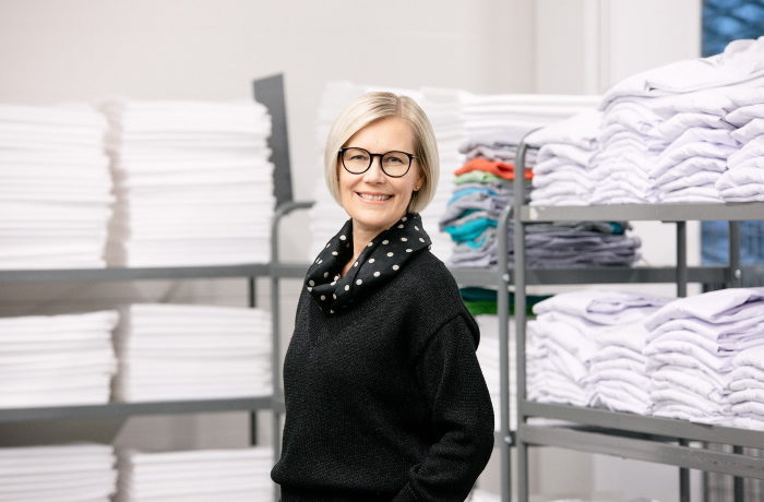 ”Yritykset tarvitsevat erilaisia tekstiileitä, mutta niiden omistaminen, varastointi ja huolto kuluttavat rahaa ja luonnonvaroja. Me tarjoamme yritysten käyttöön niiden tarvitsemat tekstiilit ja huolehdimme tuotteiden koko elinkaaresta aina suunnittelusta uudelleenkäyttöön”, kertoo ekosysteemeistä ja vastuullisuudesta vastaava johtaja Anna-Kaisa Huttunen.