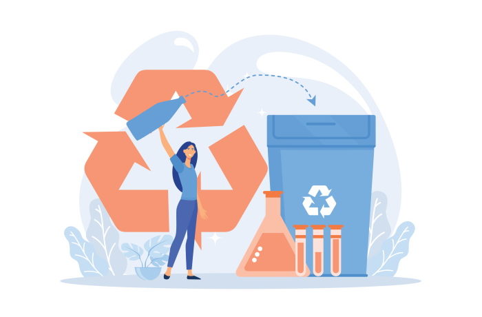 Kuva: Adobe Stock. Kun muovijäte kierrätetään kemiallisesti, polymeerit puretaan lähtöaineikseen eli monomeereiksi.