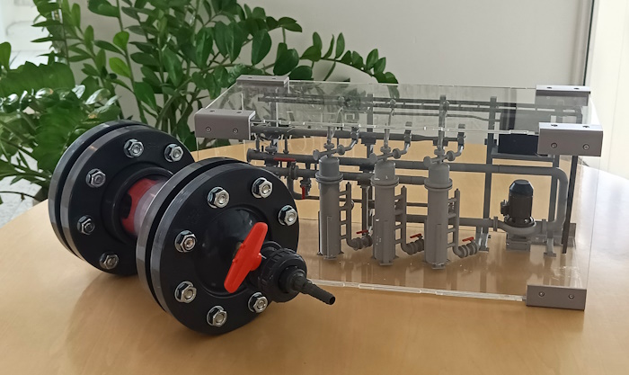 Kuva: Sanna Lindeman. Näillä eväin. Weeefinerin näytereaktori ja Sofi Filtrationin laitteiston pienoismalli.