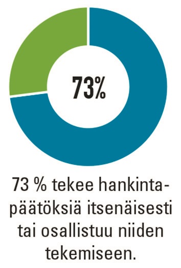 - Aktiivisesti työelämässä toimivista lukijoista joka toinen osallistuu hankintapäätösten tekemiseen.
