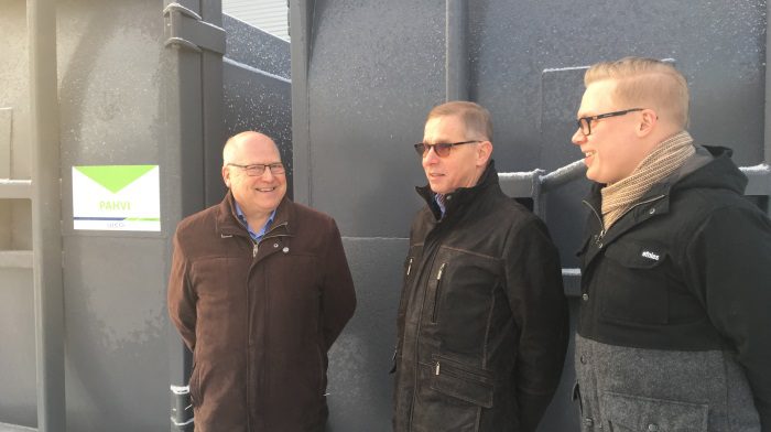 ”Toteutimme asiakkaalle nykyaikaisen jätehuollon. Puristimet ovat ulkona, mutta käyttäjät voivat syöttää jätteet niihin sisätiloista tarvitsematta kulkea lainkaan likaiselle puolelle. Ratkaisu on helppokäyttöinen ja siisti”, kuvailee Kinnunen, jolle kuntasektorin toimijat Porvoossa ovat jo pitkäaikaisia asiakkaita.